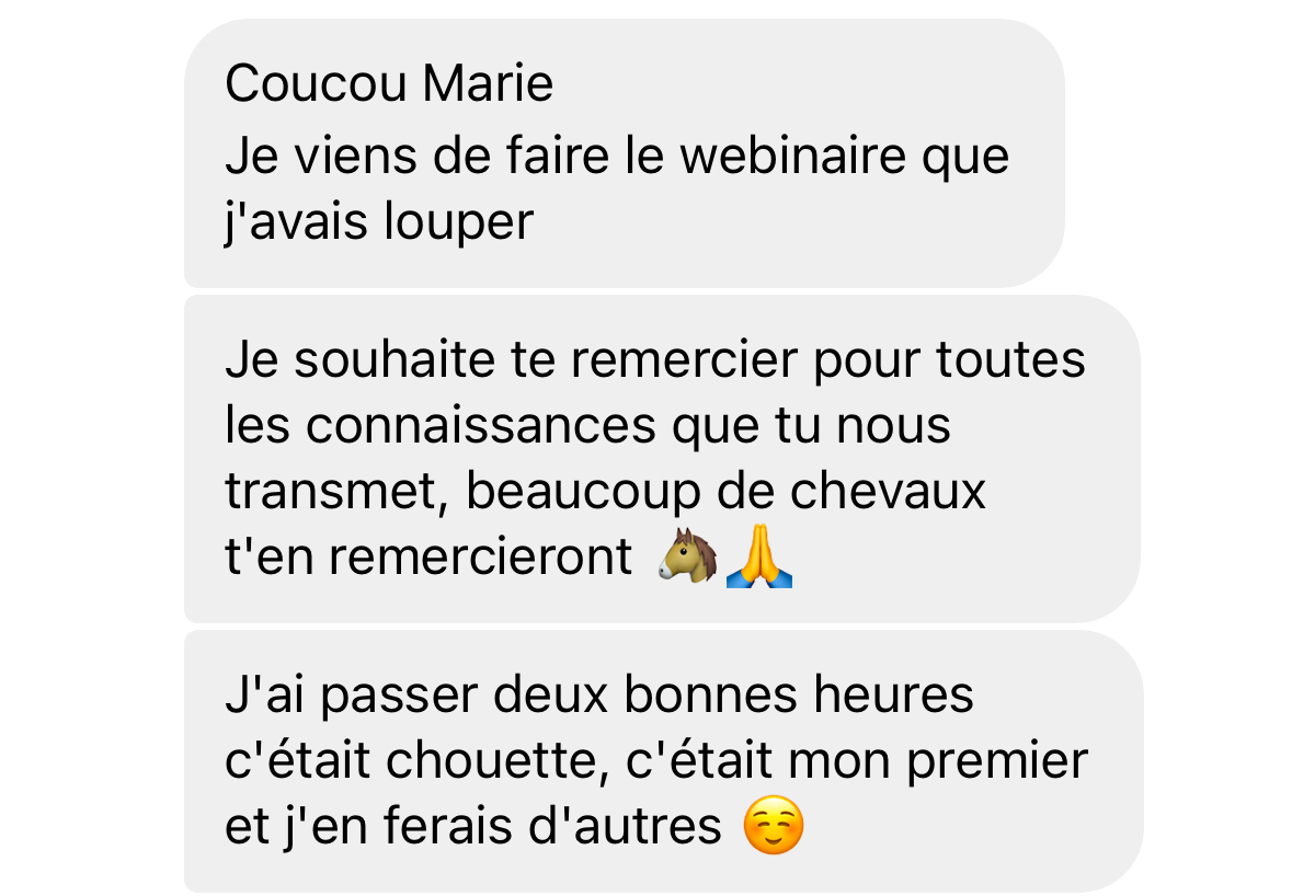Cette formation est en cours de lancement, mais de nombreux webinaires et formations sur les thèmes de la MTC et du bien-être équin ont déjà été dispensés, et le sont en permanence.